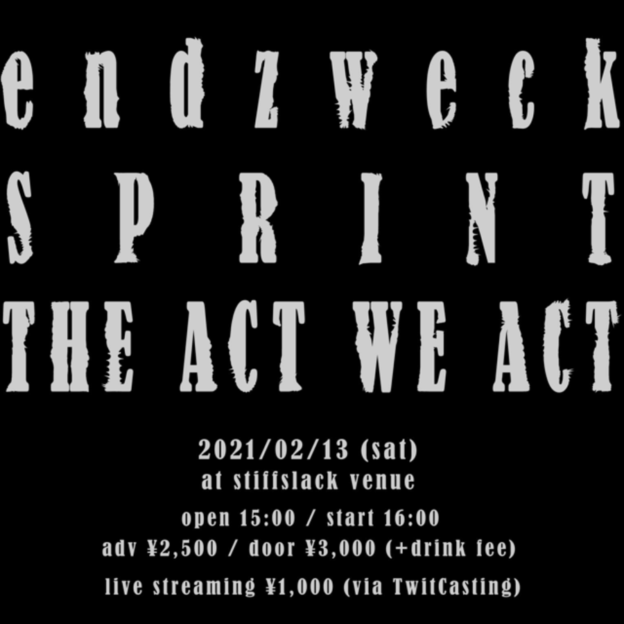 重厚でいて且つ疾走感溢れるドライヴィンエモーティブEMOサウンドを展開し国内外から支持を集める関東ハードコアの重鎮endzweckが遂にstiffslack venue初登場!対する名古屋からは先日stiffslackからリリースされたTape Meeting Vol.1にて初の公式音源をリリースしたばかりのSPRINT、そして名古屋ミュータントハードコアパンクの雄THE ACT WE ACTが登場!三者三様の似て非なるハードコアサウンドが体感できます!