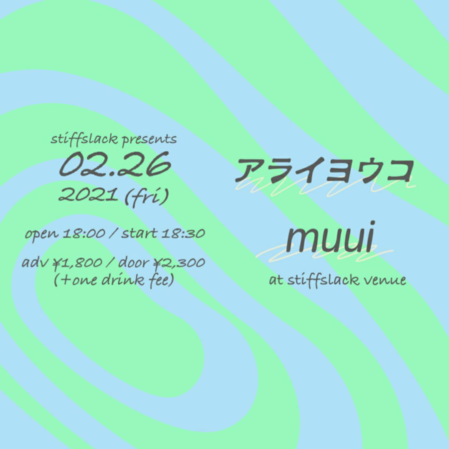 東京から日々の生活に寄り添い日々の感情の機微を歌うSSW"アライヨウコ"がstiffslack初登場!名古屋からは年末にも独自のオルタナティブな感性を披露してくれたmuuiが2021年初出演!要注目です!