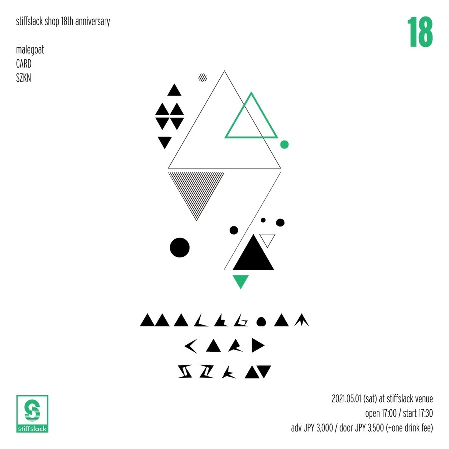 東京は八王子から今や日本を代表するDIYエモ/ポストハードコアとも言えるmalegoat、大阪からは日本語インディーロックアンサンブルをアップデートし続けているCARD、これまた東京、神奈川より国内唄心EMOの最高峰SZKNが登場!stiffslackファンならば必見のイベントです!