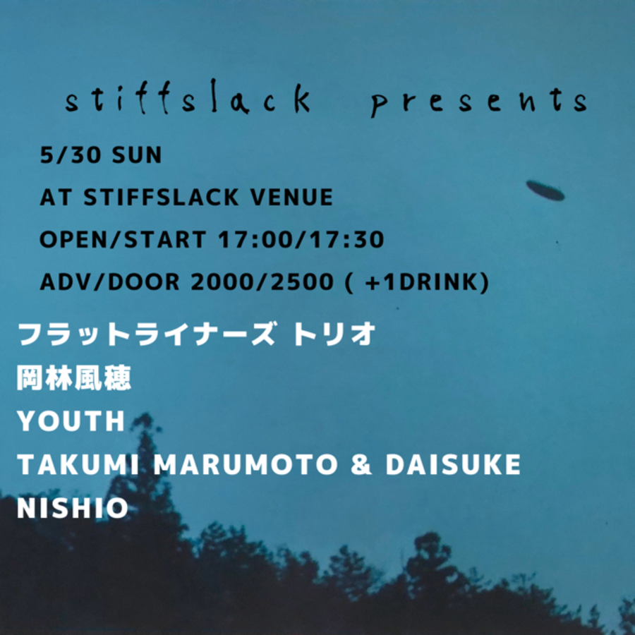2021年の5月の終わりにフラットライナーズ が久々にstiffslack venueに登場!対バンは最早SSの秘蔵の若手日本語EMOトリオyouth、先日のライブでも鮮烈且つエバーグリーンなグッドソングを連発していた岡林風穂、これまたグッドソング連発ユニットtakumi marumoto & daisuke nishioが登場!とっ散らかってるようでどこかまとまった彩り豊かなイベントです。