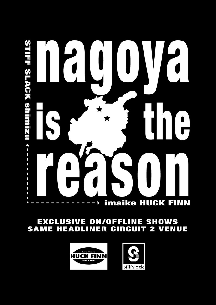 名古屋のライブハウス今池HUCK FINN/stiffslackによるサーキット企画NAGOYA IS THE REASONの第1回目が開催!HUCK FINN昼公演、SS夜公演という催しでして、両VENUEのヘッドライナーにはTHE FIREWOOD PROJECTが登場!それぞれの対バンはHUCK FINNにてmy young animal、stiffslackにてkmkms!サーキットイベントということで両会場通し券も販売です! 昼公演 今池HUCK FINN open:12:30 start:13:00 The Firewood Project my young animal 夜公演 stiffslack venue open:18:30 start 19:00 The Firewood Project kmkms チケットに関する事項 1会場のみ adv/door ¥2800/¥3300(drink別) 会場HPにて4/3 10時より予約開始 2会場通し券 ¥4600(drink別) eplusにて4/3 10時より発売開始