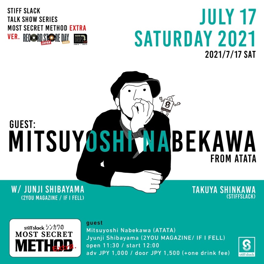 トークイベントstiffslack新川のMOST SECRET METHODが久々に開催!今回のゲストはATATAでお馴染みナベッカムパイセンことMitsuyoshi Nabekawaが登場!司会進行にはこちらもお馴染みJyunji Shibayama (2YOU MAGAZINE/ IF I FELL)が登場!