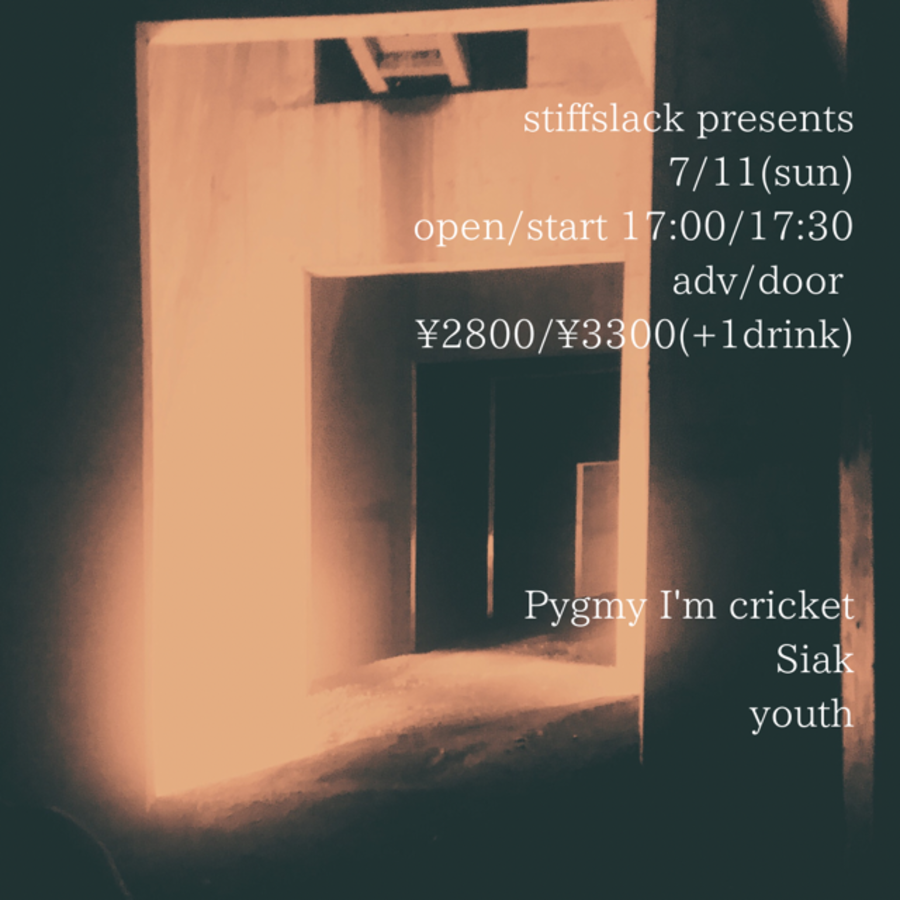 stiffslack shopでも1st ,2nd EPが好評な東京を拠点に活動する日本語EMOロックバンドPygmy I'm cricketがstiffslack venue初登場!そして京都のインストマスロックバンドSiak!!対する名古屋からは若手筆頭日本語インディーEMOバンドyouthが登場!