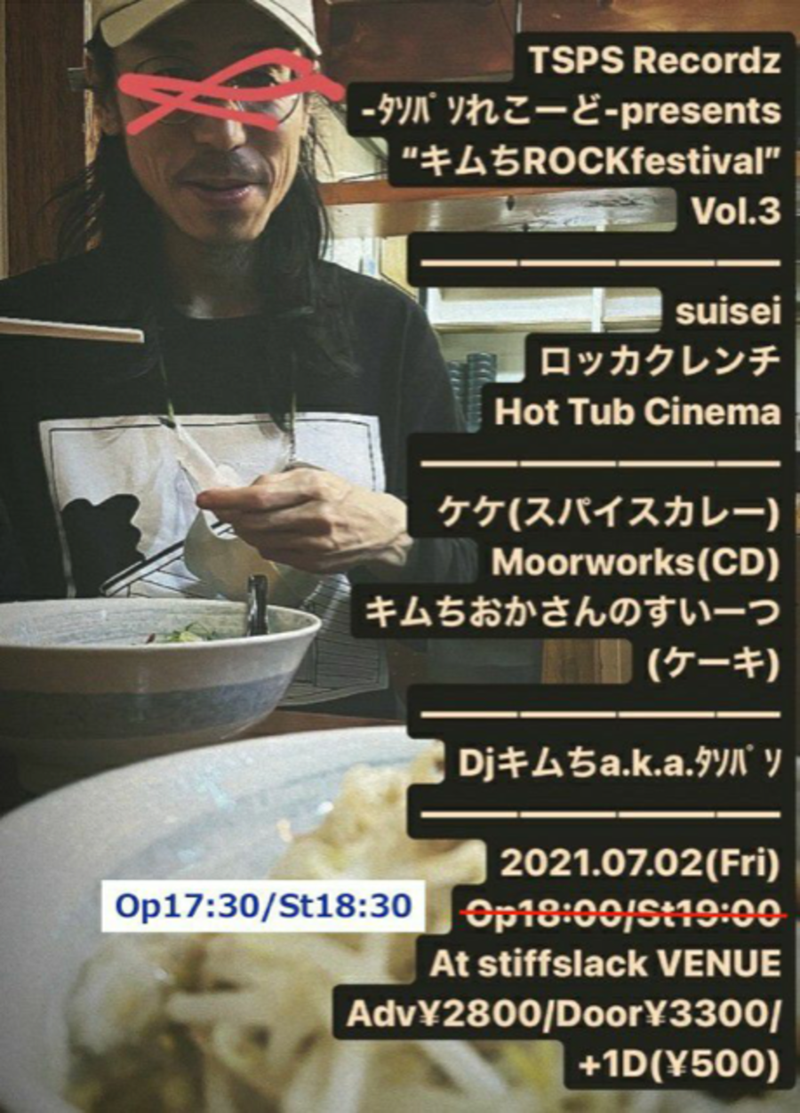 る、アコースティックduo、ロッカクレンチ。シューゲイズ経由 、新星オルタナバンド、Hot Tub Cinema。全てfrom名古屋!出店に毎度お馴染み、ケケ( スパイスカレー)をお迎えし、第3回キムろっくを開催致します!
