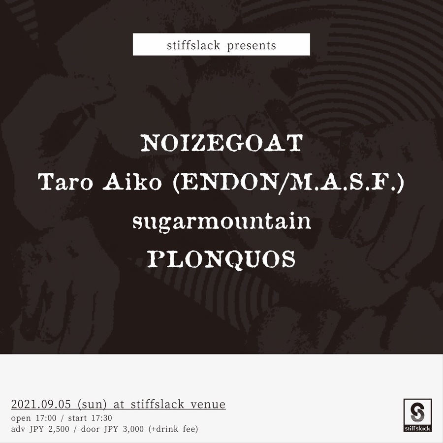 京都のエクストリームノイズハードコアバンド"NOIZEGOAT"が再びstiffslack venueに登場!対バンはENODON/M.A.S.Fでお馴染み日本から世界へその名を馳せるノイズマエストロ"Taro Aiko"、名古屋からモジュラーアンビエントアーティスト"sugarmountain"、先日強烈なSSデビューを果たしたボイスファストコアプロジェクト"PLONQUOS"が登場です。