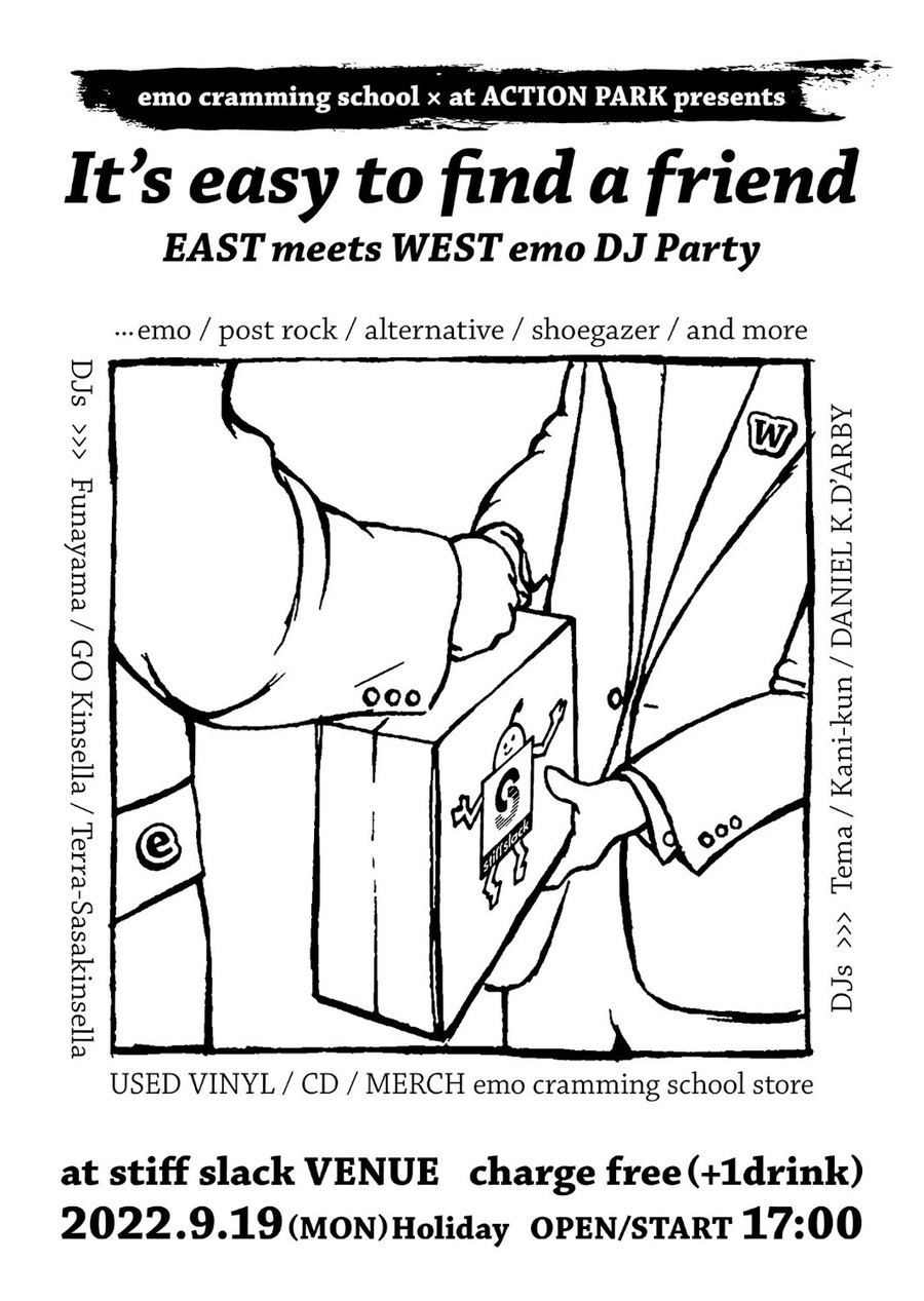 東西emo DJ共演による極上のリスティングパーティーを三連休最終日に開 催。