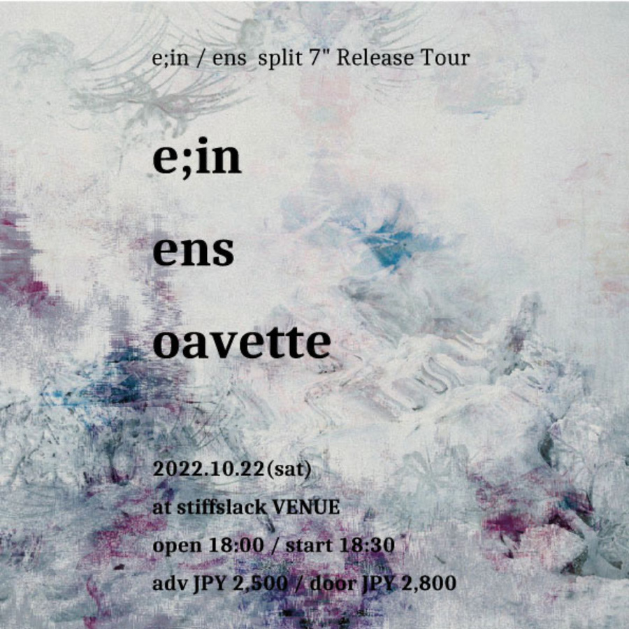 京都の轟音ポストロック"e;in"、同じく京都の激情エモーティブバンド"ens"によるスプリットツアー名古屋場所がstiffslack VENUEにて!地元からは実直にその実力を浸透させ続けている人力テクノ、ミニマル"oavette"による濃厚過ぎ三つ巴です。