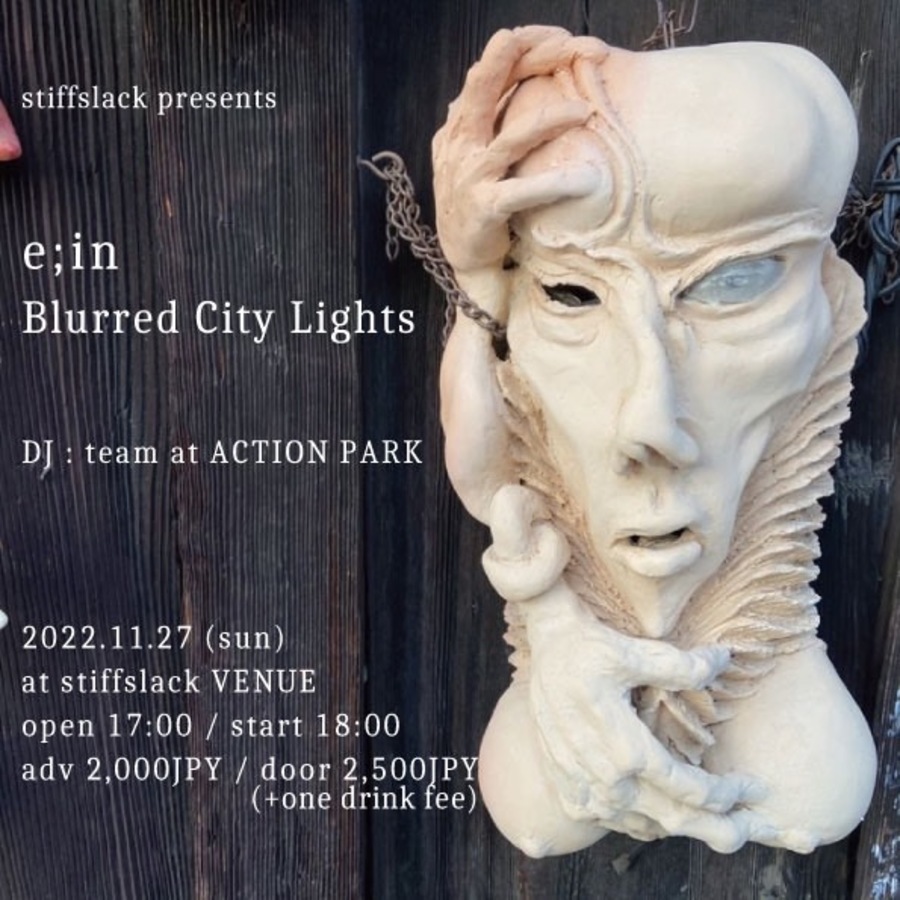 京都産轟音ポストロックe;inが再び来名!!来るたびにスケールが大きくあり、甘美な美しささえ感じる孤高の轟音はEMO,POSTROCKファンのみならずシューゲイズ、オルタナファンにも響くかと、対するは名古屋産新進気鋭のシューゲイズトリオBlurred City Lghts!!荒削りながらも可能性しか感じないトリオ編成とは思えない音の厚みとそれ貫くVo神谷の歌声は要注目です。そしてフロアを盛り立てるのはお馴染みteam at ACTION PARKにて!!濃厚な音楽の夜をご提供!!