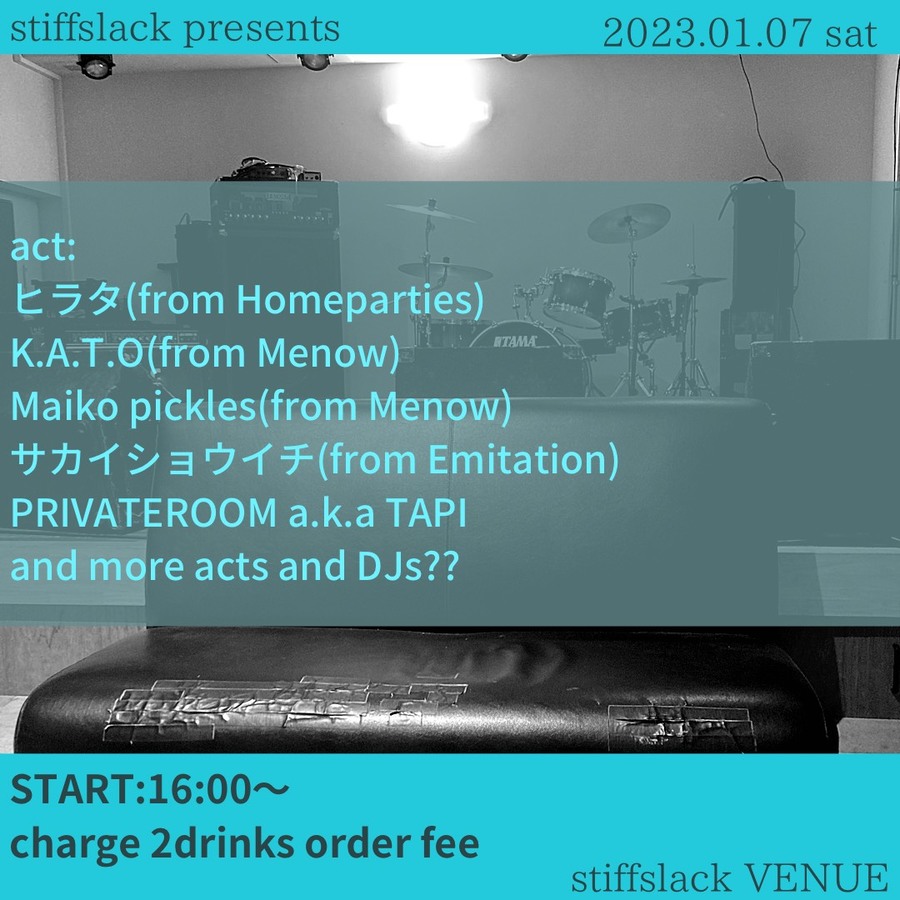 START 16:00〜please 2drinks order(¥600×2)チケット前売・ご予約は店頭またはメールフォームで
