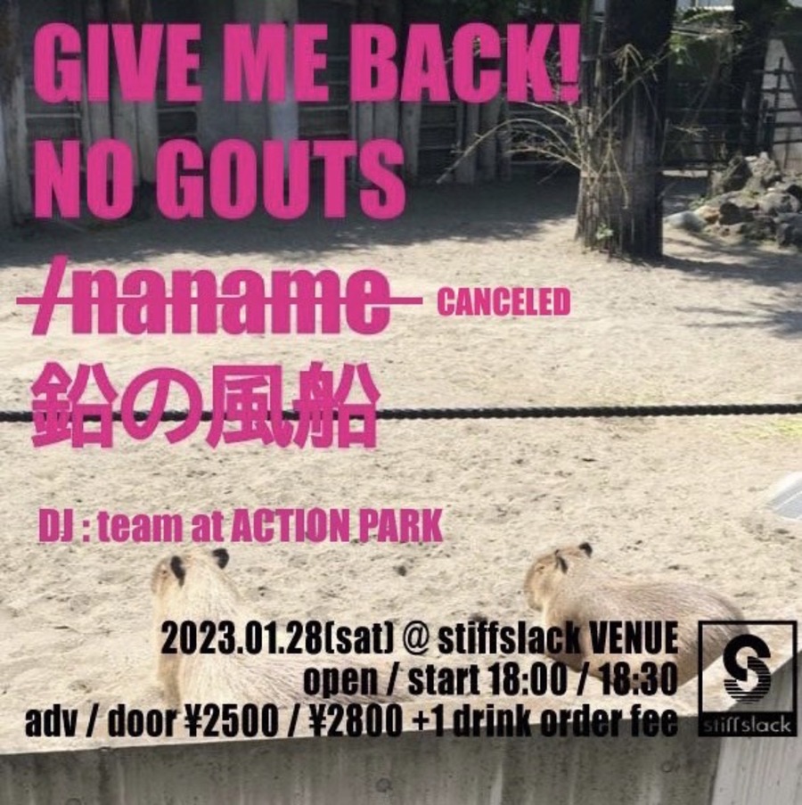 ユウレカ、Look At momentのメンバーにて構成されたHOT SNAKES直系ポストハードコア"GIVE ME BACK!"が香川より襲来!!対バンにはSS初登場ドライヴィンポストハードコア"NO GOATS"と久々登場ミニマルポリリズムマス"/naname"!!!