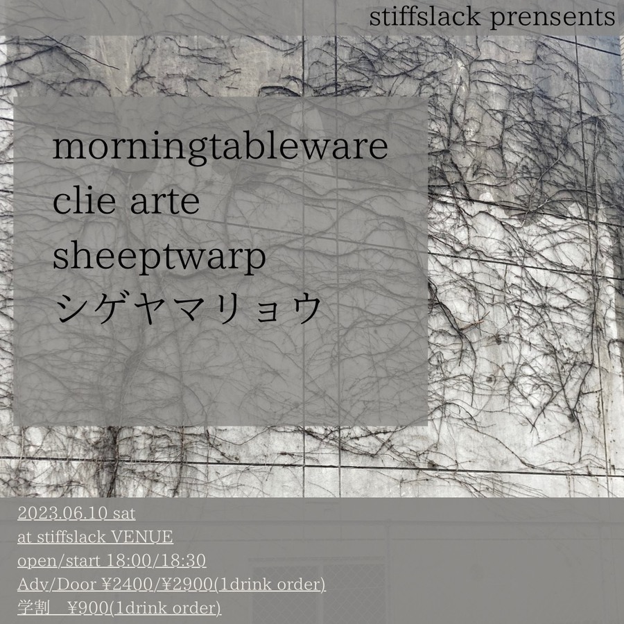 202306/10(Sat)![]() stiffslack presents(出演者変更あり2023/6/9)morningtableware stiffslack presents(出演者変更あり2023/6/9)morningtableware