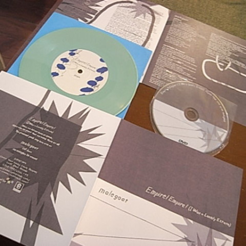 USミシガンのエモリヴァイバルの立役者Keith Latinen率いる、EMPIRE! EMPIRE!とアウトサイドオブ東京でDIYエモインディーの醍醐味を国内外問わず知らしめているMALEGOATとのスプリット作品をSTIFFSLACKとKeith主催のCOUNT YOUR LUCKY STARSとの共同リリース(US/JPN盤とはジャケットが違います)。MALEGOATに合わせてアップテンポの曲で来ると思いきや彼らの一番得意とするサッドでミッドテンポの曲を2曲提供、Keithの不安定でそれが癖になるヴォーカリゼーション、マイナーコードのアルペジオギター、往年の90'sエモサウンドを復刻される鳴りはもはや貫禄の域。一方のMALEGOATは以後続くスプリットシリーズの第一弾で、トリッキーでトゥインクルするエモとマスを横断する"Call Down"とTHE PROMISE RINGを彷彿とさせる清涼感溢れる名曲"The Midnights Lie Around"を提供。DVDの映像は2011年のジャパンツアーの模様を作品化したしたもので、ジャパンリリースのみ封入された作品です(directed by 土屋恭平)。