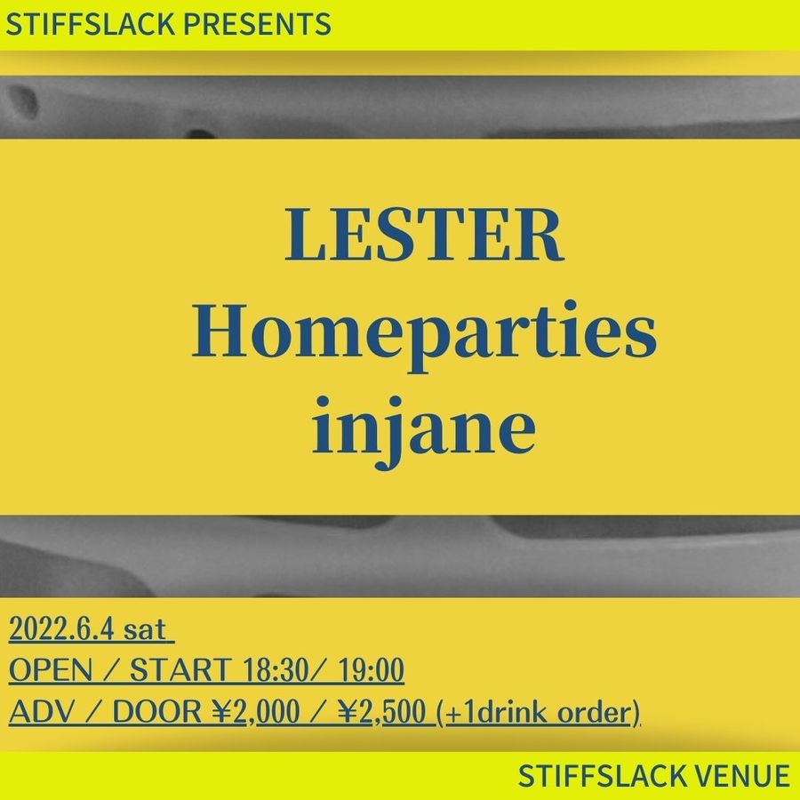密かな話題を集める千葉県産EMOロックバンド"LESTER"がstiffslack venue初登場。JIMMY EAT WORLD的な繊細かつダイナミックなギターアンサンブルに胸を締め付けられるようなメロディが持ち味!対バンには地元からバンド編成での活動を活発化させつつある注目のオルタナティブロックバンド"Homeparties"、こちらも注目のPAVEMENT直系Lo-Fiインディロック"injane"の登場です!
