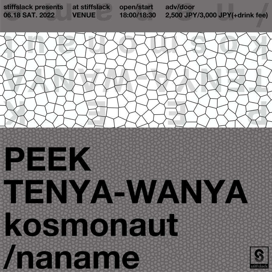 東京を拠点に活動するピュアポストロックバンド"PEEK"が遂にstiffslack VENUE初登場!!最新作"Where I am"にも内包された都市生活者のクールネスと詫びサビが綯交ぜになったポストロックサウンドは要注目!!そして地元からもテクニカルインストマスロックバンド"TENYA-WANYA"と今回初ライブとなる?ベールに包まれまくっている初期バトルズやドンキャバの匂い香るミニマルマスロックバンド"/naname"、シネマティックポストロック"kosmonaut"と全てインストバンドで取り揃えたイベントとなります!!