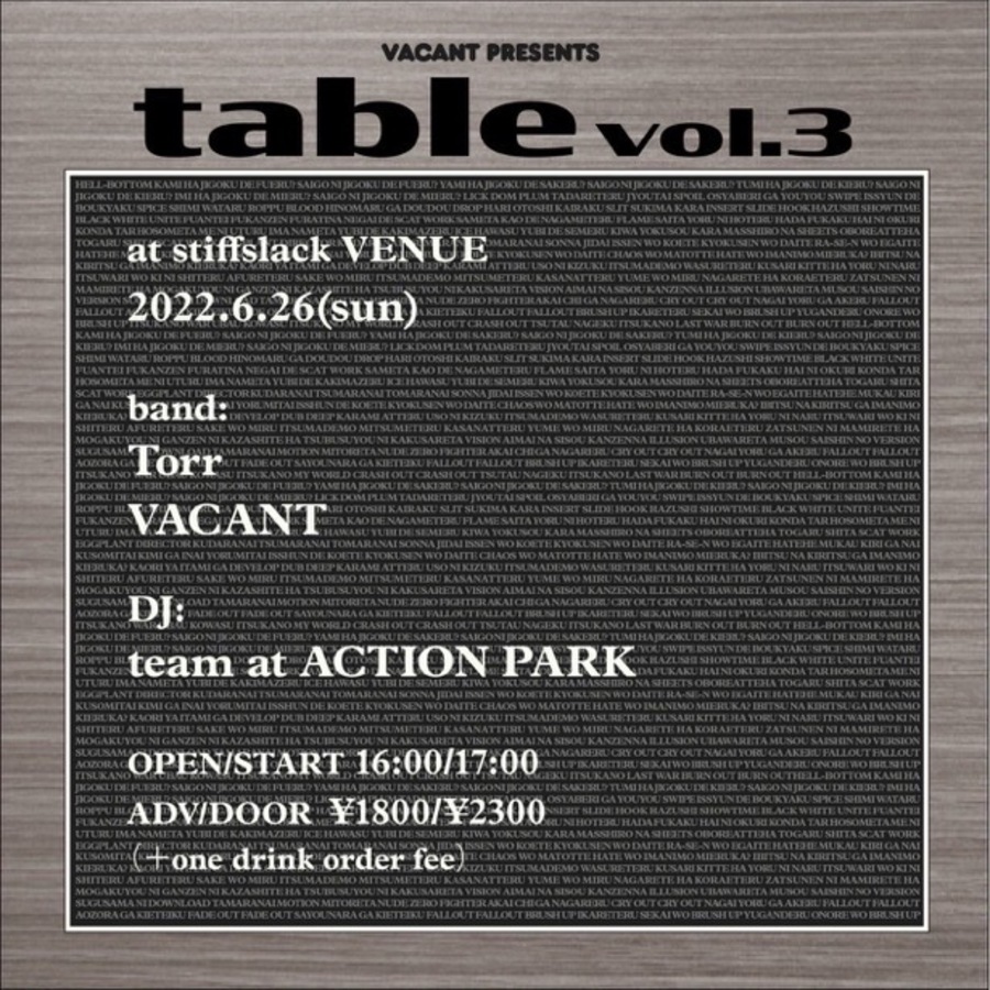 名古屋産硬質ソリッド/ポストハードコアトリオ"VACANT"による企画"table"の第3回目が開催!!