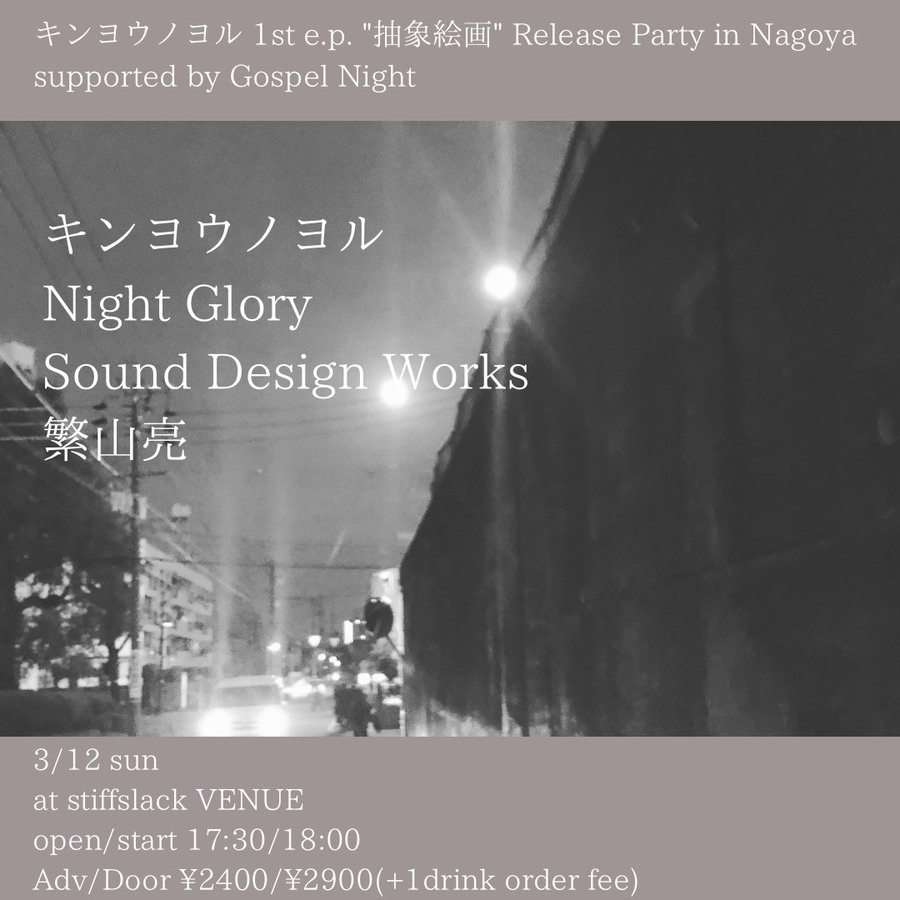ツーピースとは信じ難い分厚く甘美な音像とメロディを紡ぐ東京拠点に活動する"キンヨウノヨル"による1st e.p.「抽象絵画」のリリースパーティの名古屋場所が"Gospel Night"サポートの元開催!!
