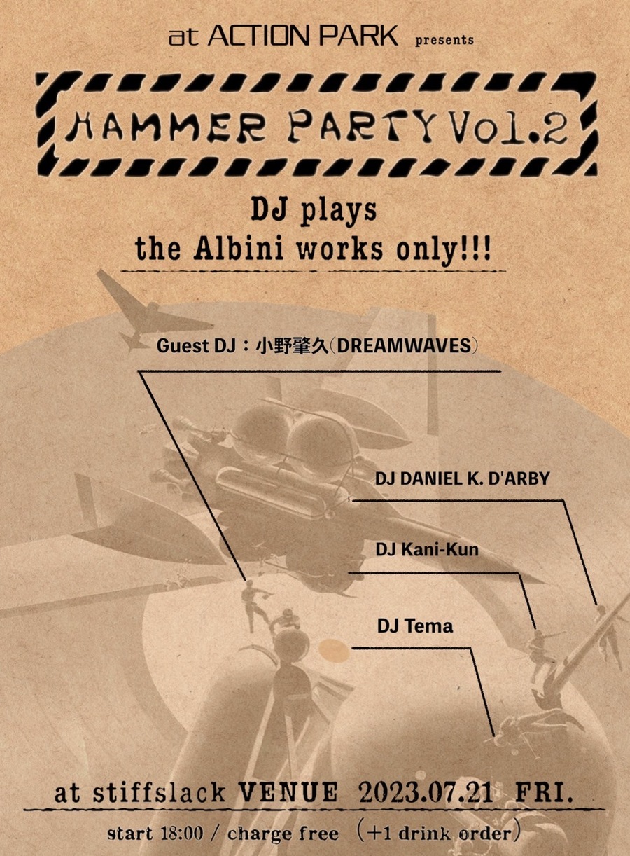 HAMMER PARTY Vol.2 DJ plays the Albini works only!!!Guset DJ:小野肇久(DREAMWAVES)