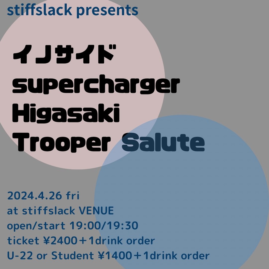 OPEN 17:00 / START 17:30Adv ¥2,400 / Door ¥2,900 +1drink(¥600) 学割もしくは22歳以下 ¥1,400 +1drink(¥600) ティーンエージャー 1drink(¥600)のみチケット前売・ご予約は店頭またはメールフォームで