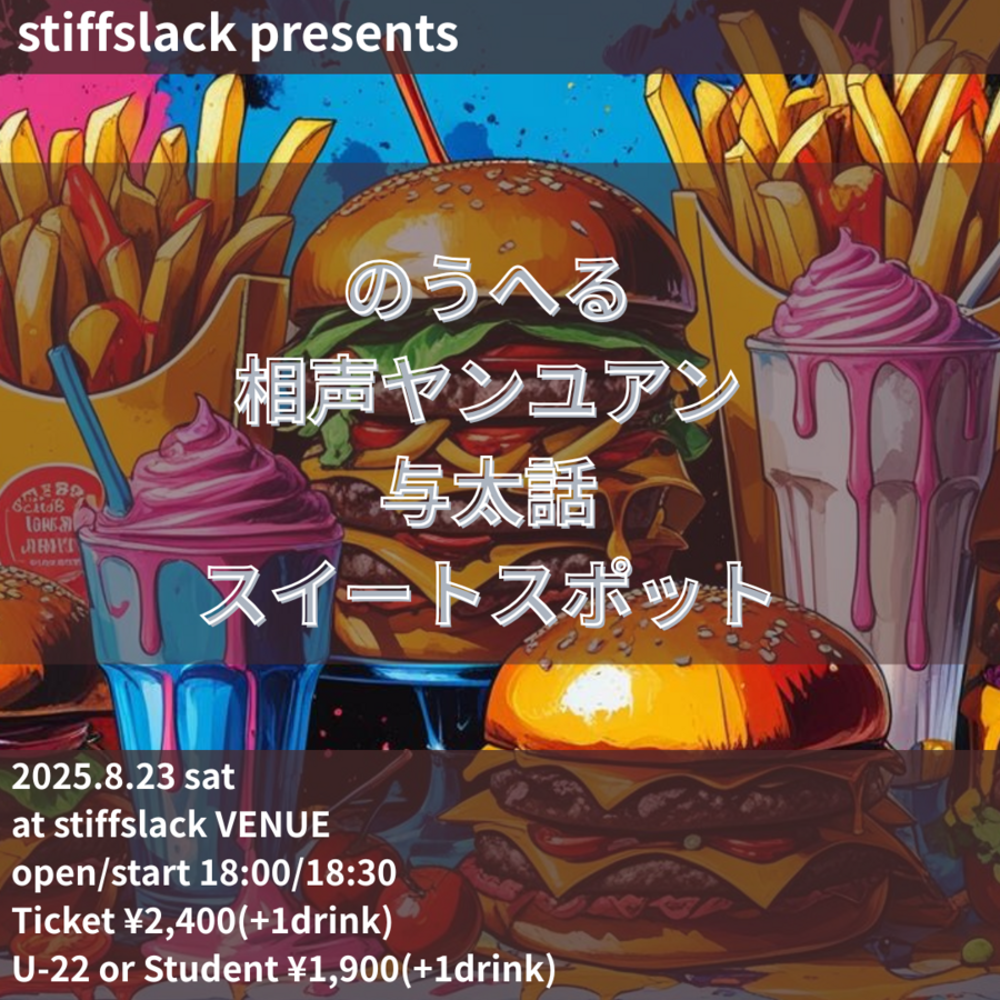 OPEN 17:30 / START 18:00TIcket ¥2500( +1drink ¥600) U-22 or Student ¥1500( +1drink ¥600)チケット前売・ご予約は店頭またはメールフォームで