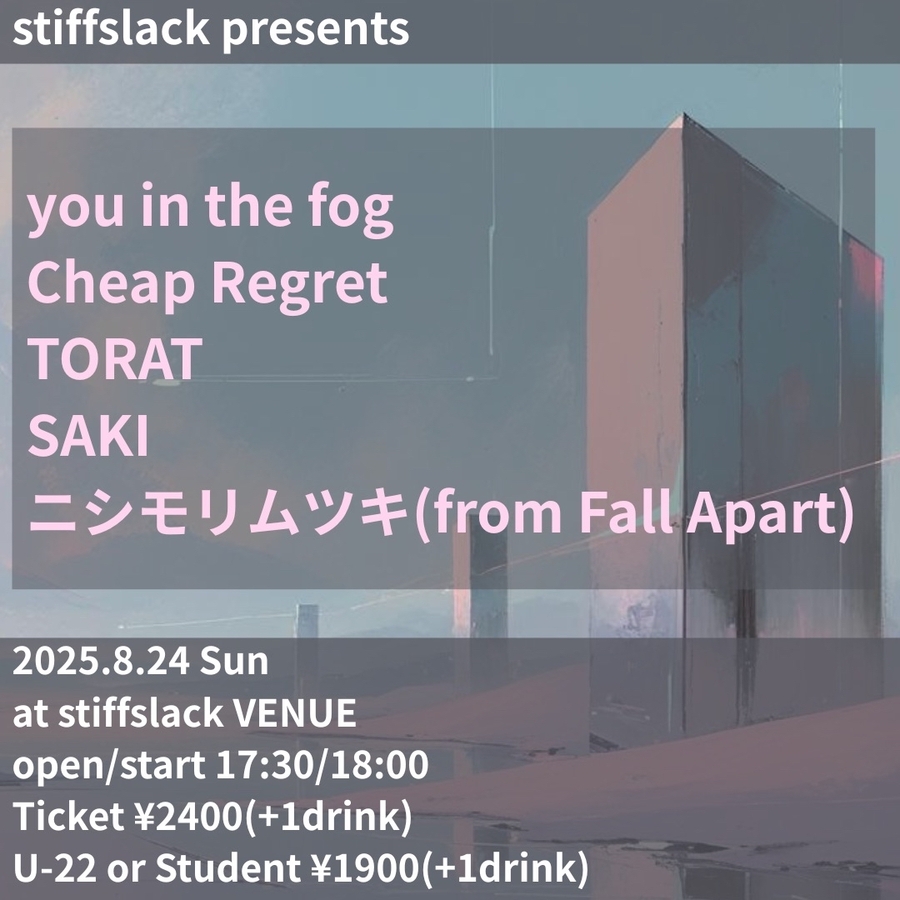 そして、センスフルなEDMトラックとRAPとフロウを披露するTORATが超久々に登場とFALL APARTよりニシモリムツキによるオーガニックポップ/ドリームポップソロという多種多様なんだけどSSならではのバランスでまとめた一夜です。