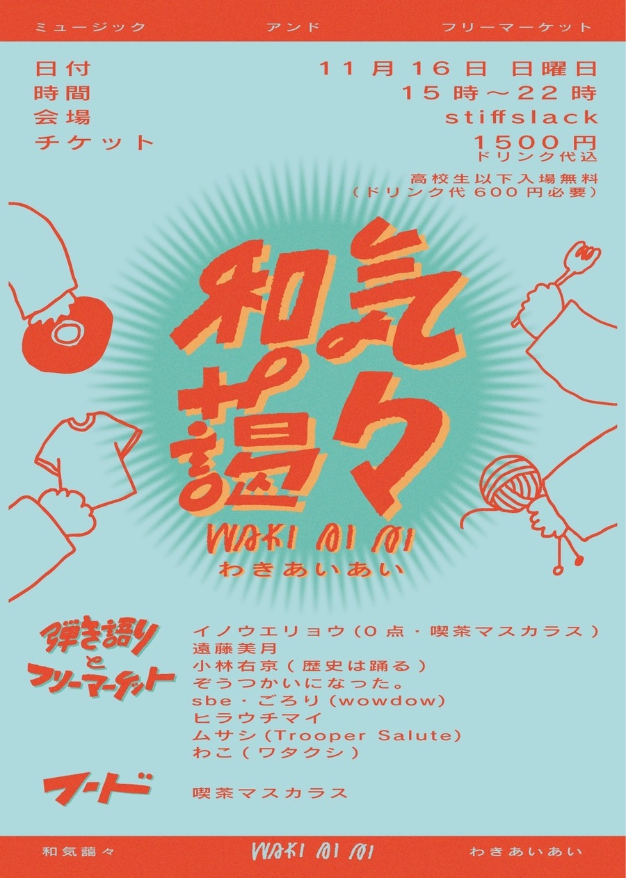 ケンジさんとstiffslackが名古屋で活躍されているアー ティストと面白いことをやりたい!! と打診をいただき共催という形で弾き語り& フリーマーケットを開催することになりました。 出演するアーティストの弾き語りに加えて出演者によるフリーマー