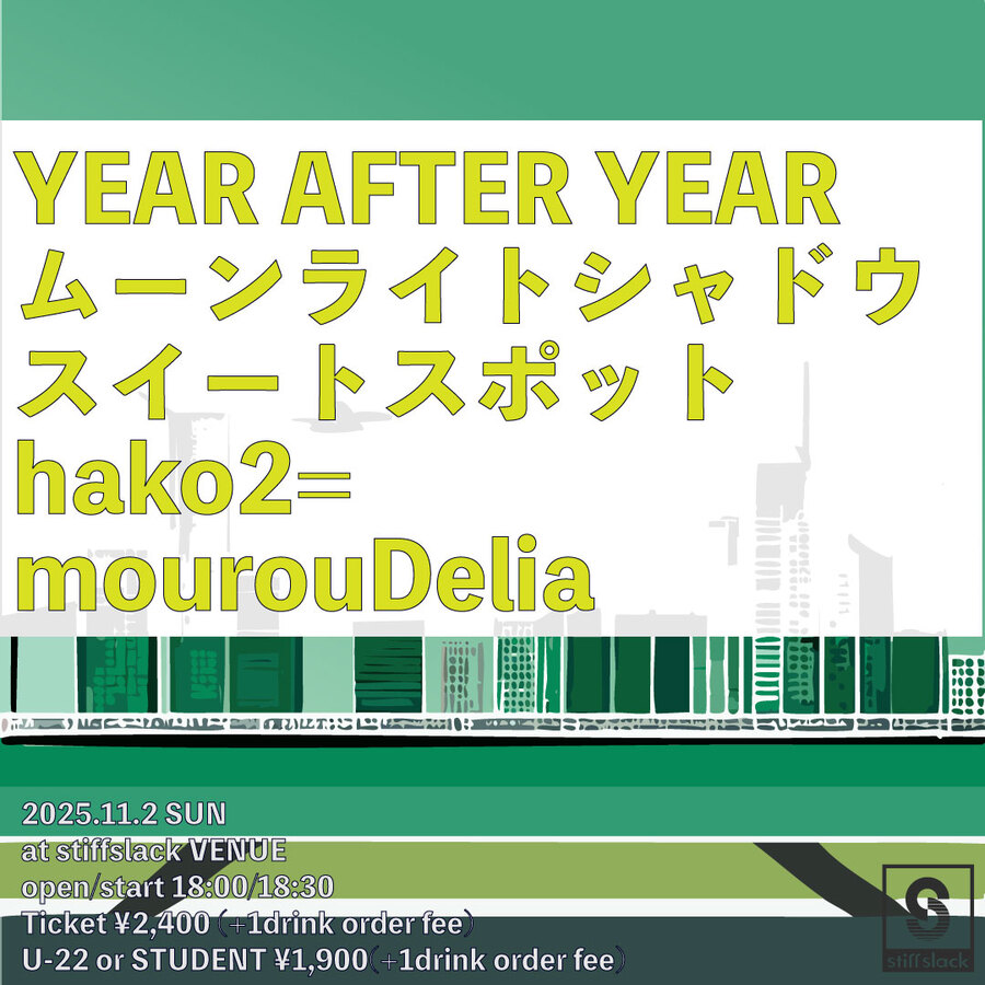 OPEN 17:00 / START 17:30Adv ¥2,400 / Door ¥2,900 +1drink(¥600)チケット前売・ご予約は店頭またはメールフォームで