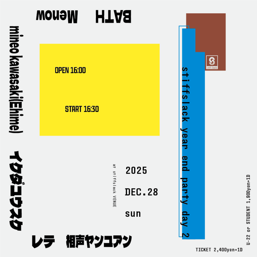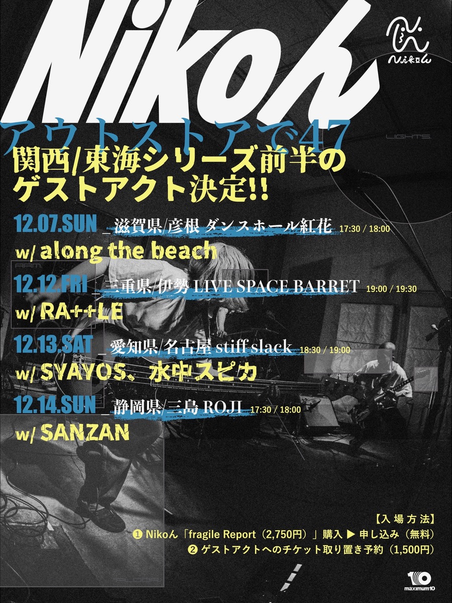強靭すぎるアンサブルにて共演者や初見のお客様をびっくりさせ続ける三重のBATH、春先のアメリカはサンフランシスコツアーを経てからの音楽の深度の進化が素晴らしい名古屋エクスペリメンタルインディフォーク"Menow"にアシッドフォーク界の大谷翔平的才能の塊"イケダユウスケ"、クラシカルな畑の人間がオルタナティブポップへ接近してなんかめちゃくちゃ新しいエクスペリメンタルポップ作り始めちゃってる"レテ"に名古屋隠れた名曲量産インディロック"相声ヤンユアン"というすごい年の瀬。